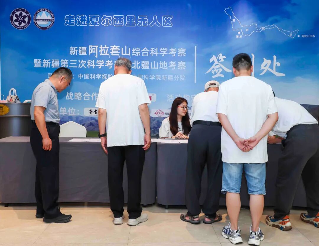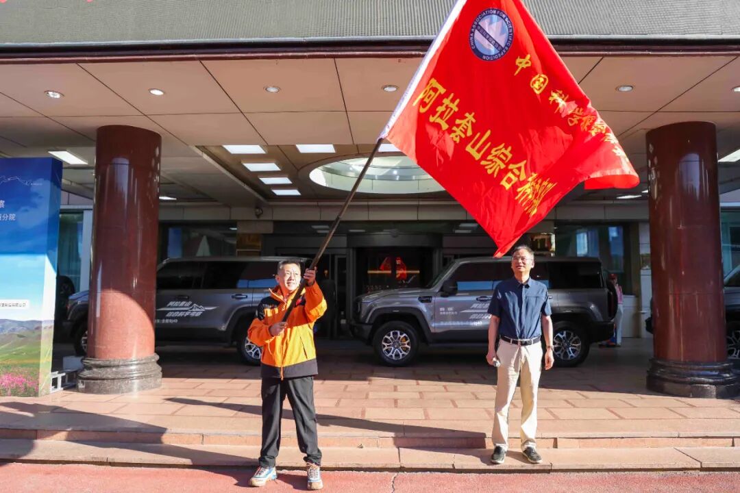 28日出发仪式上,中国科学院新疆分院分党组书记、院长,中国科学院院士肖文交,新疆维吾尔自治区科学技术厅二级巡视员余英荣等出席仪式并致辞。肖文交院士向本次科考队队长、中国科学探险协会常务副主席兼秘书长李杰授队旗,并发布出发令。