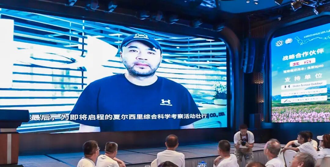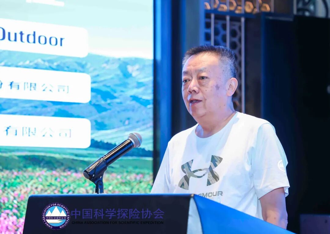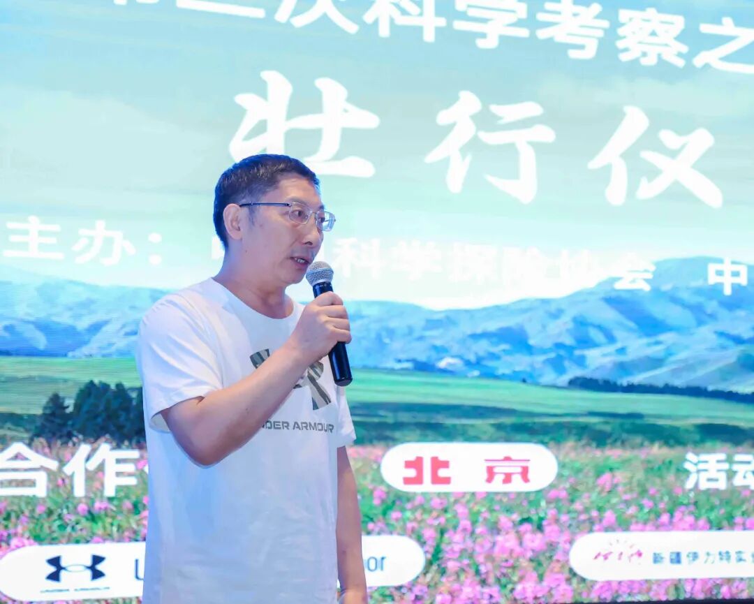 协会主席崔鹏院士通过视频连线致辞。他在致辞中强调,科学探险是科学探索和科学发现的源头和基础,是非常复杂和艰巨的科学挑战,是伟大的科学创新事业。科学探险的成功既要有丰富科学知识和勇于探索精神的科学家参与,也需要组织方、协同方、政府部门等各方面的大力支持和精心组织。他向协助本次科考的博州政府、科技局、林草局、保护区管理局,以及博州军分区等单位的领导和工作人员表示衷心的感谢!向给予本次科考提供赞助支持的北京汽车、安德玛户外、新疆伊力特实业股份有限公司、浙江博庭帐篷制造有限公司等单位表示诚挚的谢意!