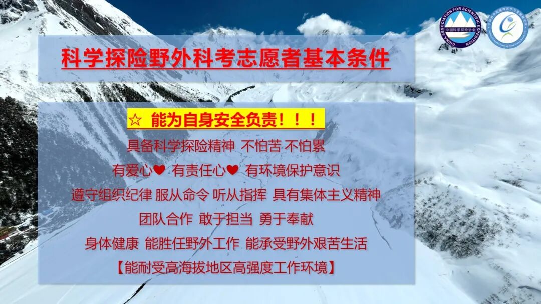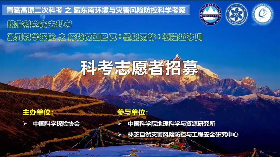 青藏高原二次科考 之 藏东南环境与灾害风险防控科学考察“跟着科学家去科考”——是中国科学探险协会发起并组织开展的,由科学家科研团队带领,少数志愿者参与的系列科学探险活动,旨在影响和带动社会力量参与到常人难以到达的未知区域的科学探索发现,弘扬科学家精神和科学探险精神,培育科学探险的群众基础,促进科学探险事业发展。本次科考活动是第二次青藏高原综合科学考察的一部分,参与单位包括:中国科学院地理科学与资源研究所、林芝自然灾害风险防控与工程安全研究中心等。首席科学家是我会现任主席崔鹏院士,带队科学家是中国科学院地理科学与资源研究所郝建盛博士和李朝月博士。主要科考区域为西藏东南部,雅鲁藏布江下游,南迦巴瓦峰下多雄河谷,嘎隆啦冰川、派墨、札墨公路等区域。时间:2024年11月27日-12月3日,为期7天。欢迎身心健康、热心科学探险事业的协会会员报名参加!【本次科考限招 8 名志愿者,全部费用自理,报名从速!】